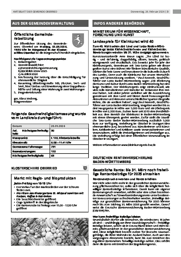 Wo? Bürgersaal, Klosterschiire | Veranstalter: Gemeinde Oberried