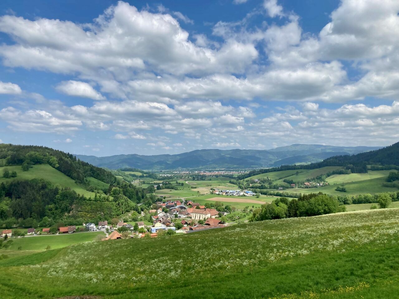 Auf dem Panoramaweg öffnet sich ein wunderschöner Blick auf Oberried und das mittlere Dreisamtal. Der Panoramaweg ist Teil der Wanderung auf dem Felsenweg.